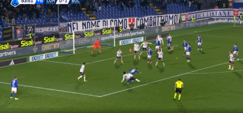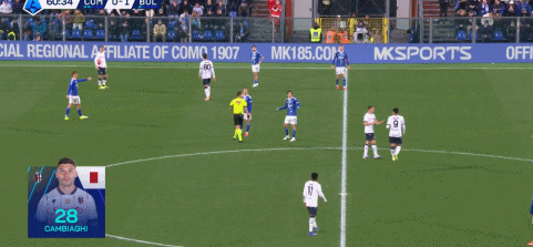 第49分钟,打破僵局,卡斯特罗助攻坎比亚吉破门,博洛尼亚1-0