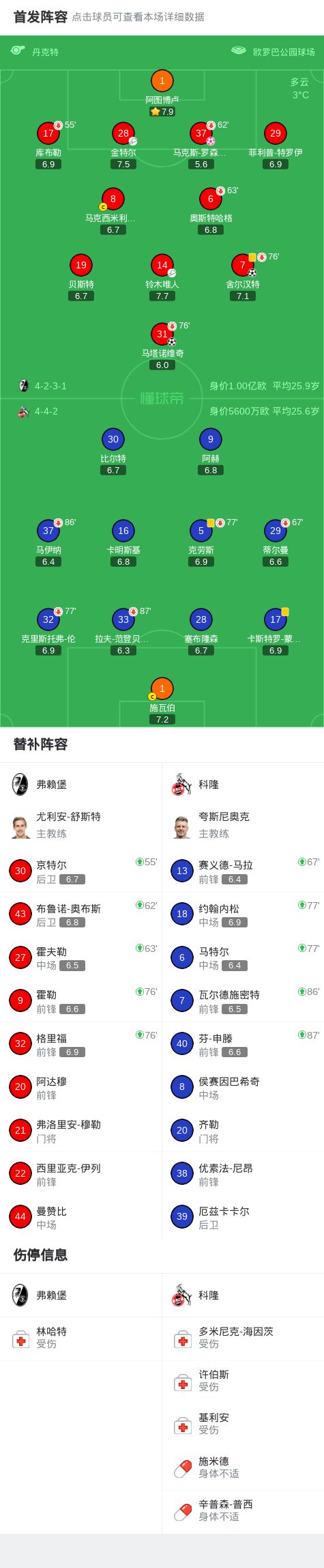 第10分钟,弗赖堡球员马克斯-罗森费尔德自摆乌龙。
