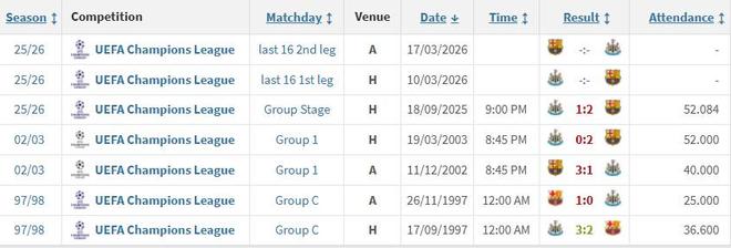02-03双方再次在小组赛相遇,巴萨主场3-1、客场2-0双杀了纽卡,巴萨最终小组头名出线,纽卡则小组第三出局,不过巴萨在16强中两回合2-3遭到尤文淘汰。