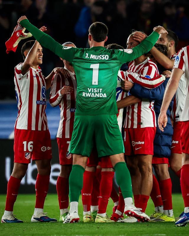 马竞阵容(442):穆索/马科斯·略伦特、普维尔、汉茨科、鲁杰里/朱利亚诺·西蒙尼(76’何塞·希门尼斯)、卡多索、科克(58’瑟洛特)、卢克曼(58’莫利纳)/格列兹曼、阿尔瓦雷斯(69’巴埃纳)