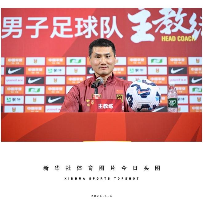 2026年1月4日,国足主教练邵佳一在媒体见面会现场。 当日,中国国家男子足球队在广东肇庆举行媒体见面会,主教练邵佳一正式亮相。 新华社 发