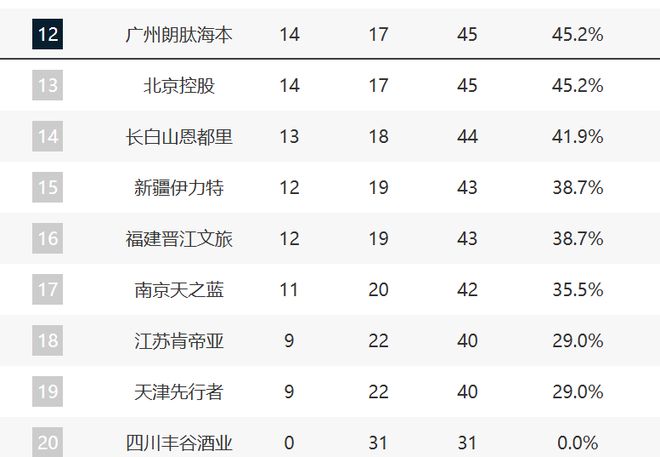 9-11还是一样的战绩。但目前山西和辽宁还是太不稳定了,特别是辽宁已经两连败了,攻守都是崩盘的表现,再度陷入低谷。山西目前的起伏还是大,宁波这轮则是意外惨败给了北控。不过这三支球队还是需要尽可能巩固住排名,因为他们的优势不大。