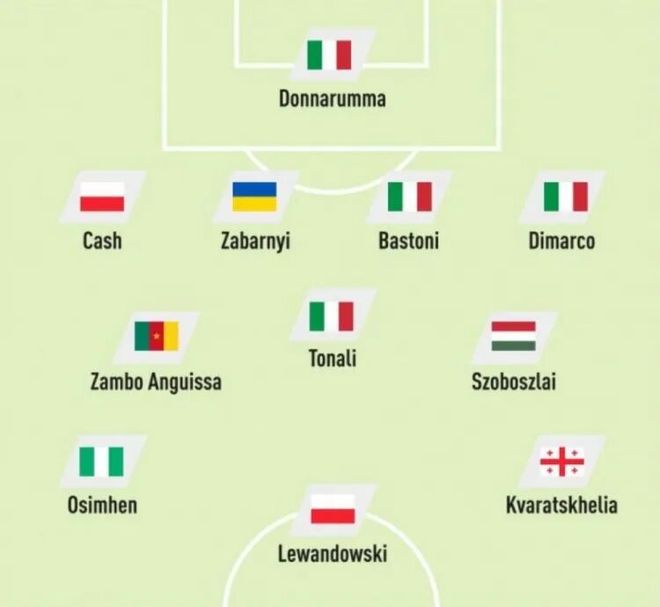 无缘世界杯最佳11人:莱万K77领衔锋线 托纳利索博镇中场 多纳鲁马在列